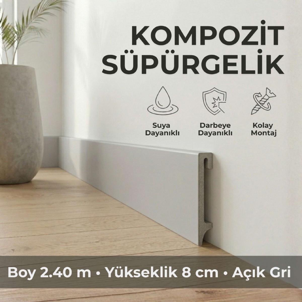 Espumo kompozit süpürgelik; estetik, dayanıklılık ve suya/neme karşı direnç özelliklerini bir araya getirerek yaÅŸam alanlarına uzun ömürlü ve düzenli bir bitiÅŸ kazandırır.