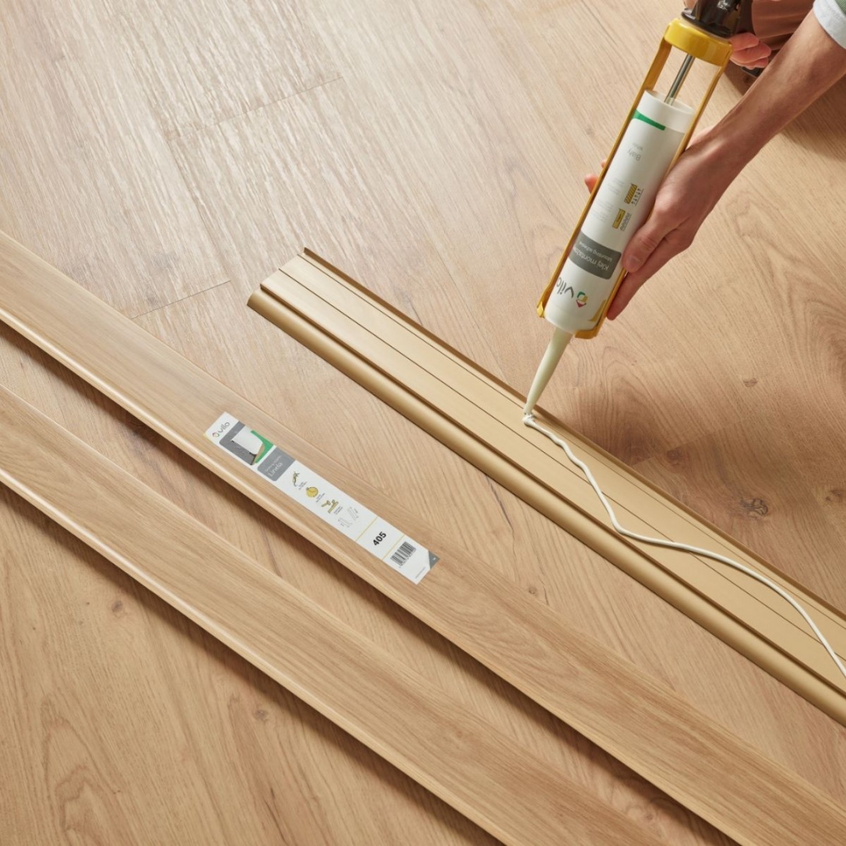 5. Vilo montaj yapıştırıcısını süpürgeliklere uygulayın - etiketteki talimatlara tam olarak uyun.